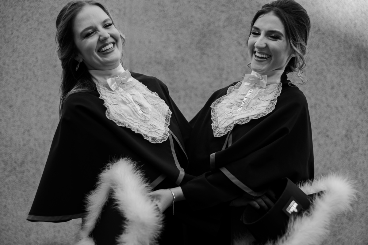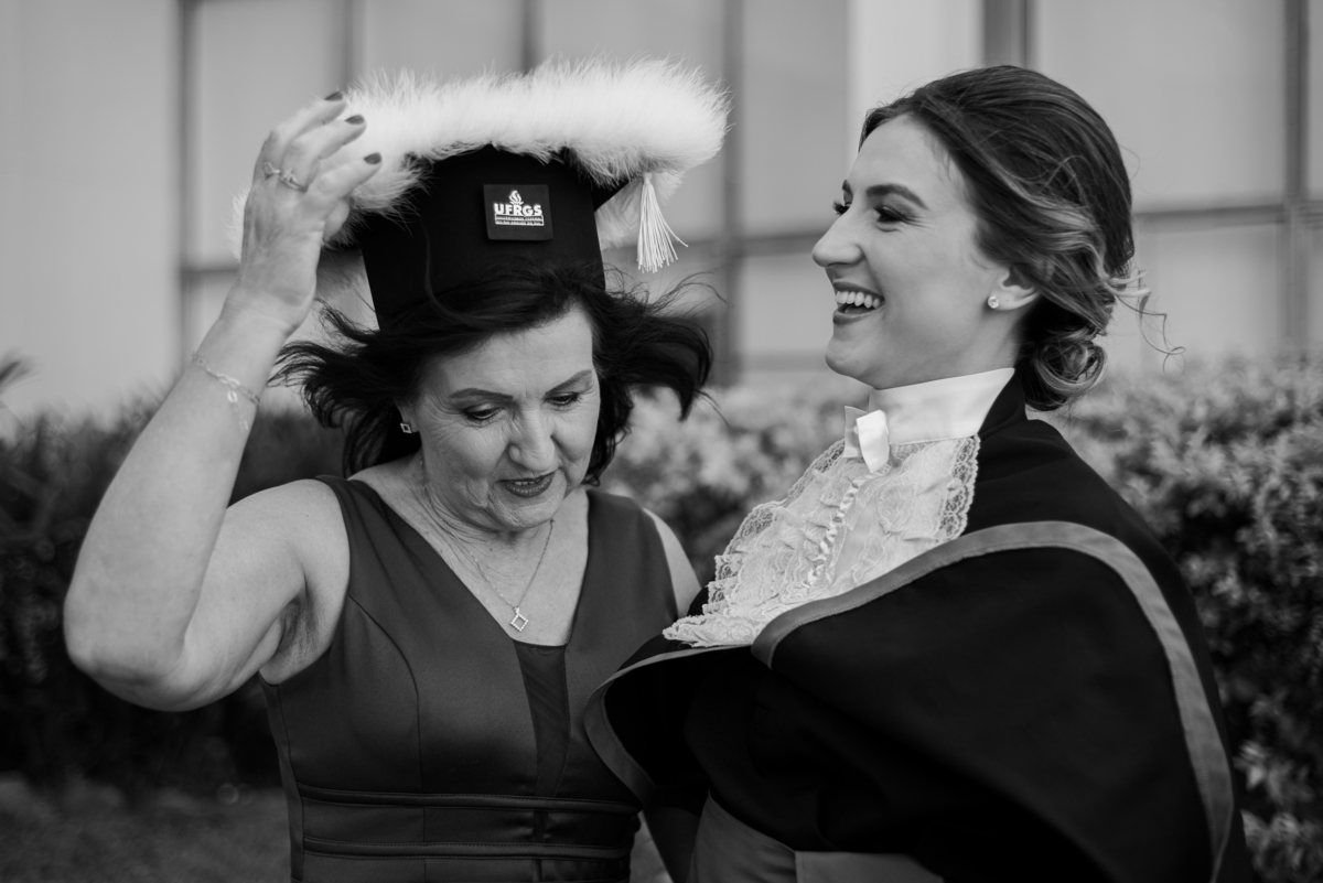 Larissa e Suélen se formaram em Medicina e eu sabia que os retratos deveriam ser à altura. Minha fotografia mistura isso e também um pouco de humor, que nunca falta nos meus registros.